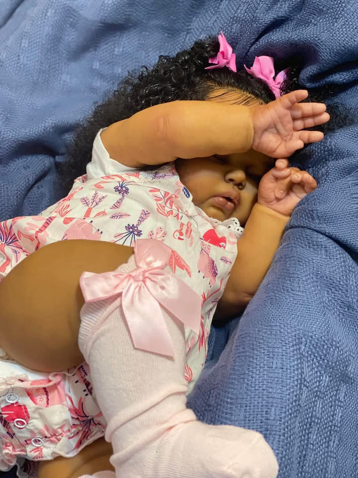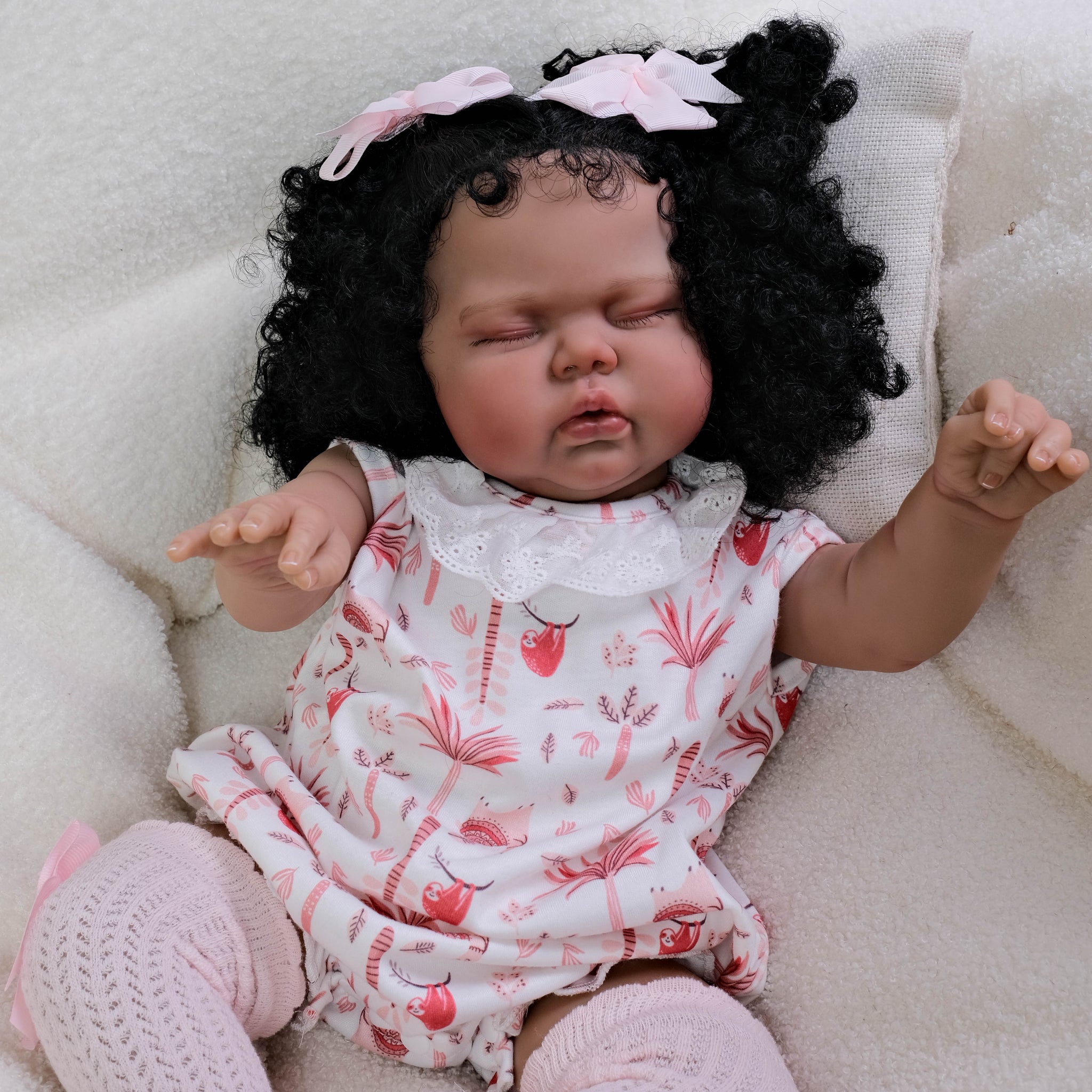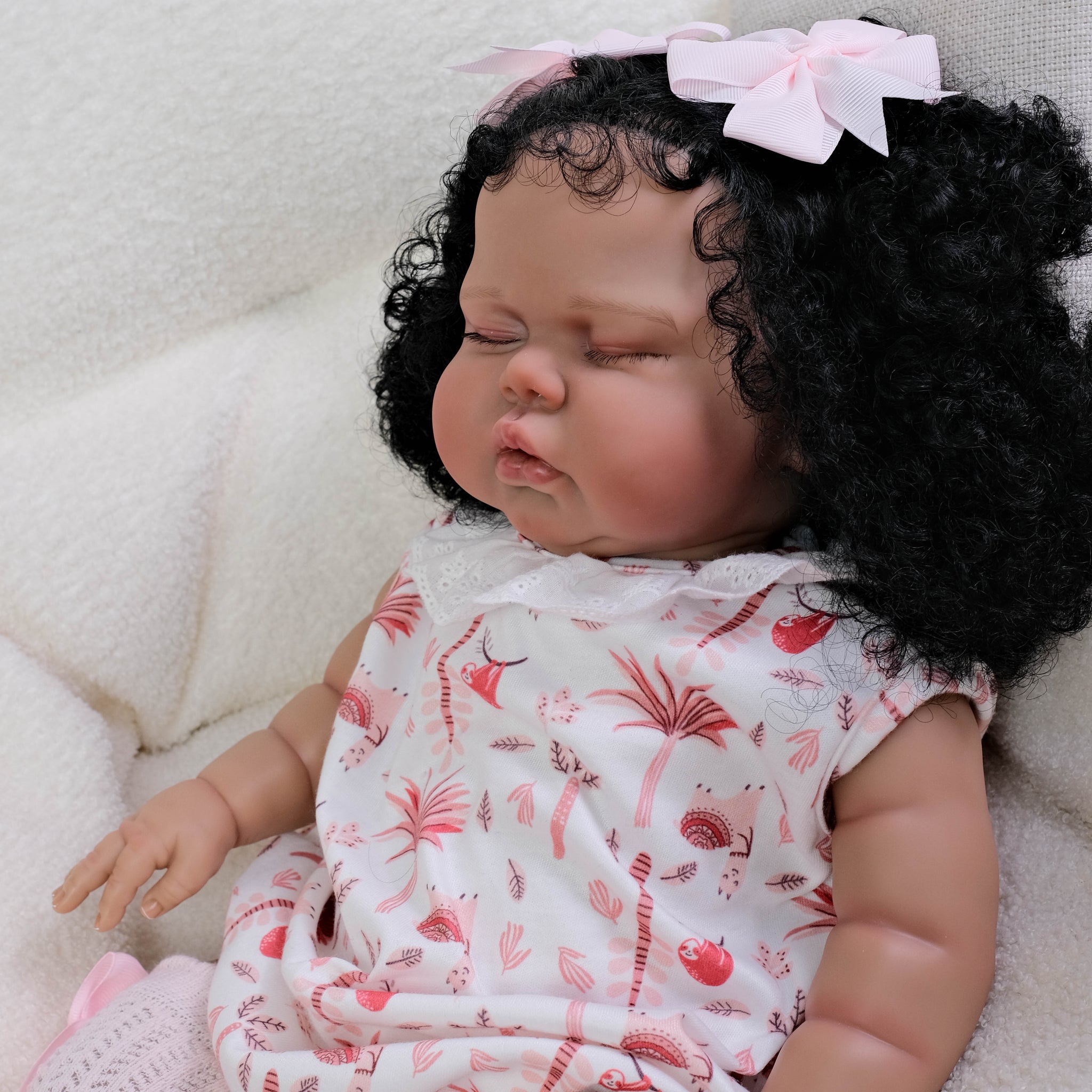 Pinky Reborn 19 inch Reborn Baby Doll American-Africa Newborn Sleepping Dolls with Rooted Black Hair Realistic Face Plush Body Collectible Doll Gifts For Kids