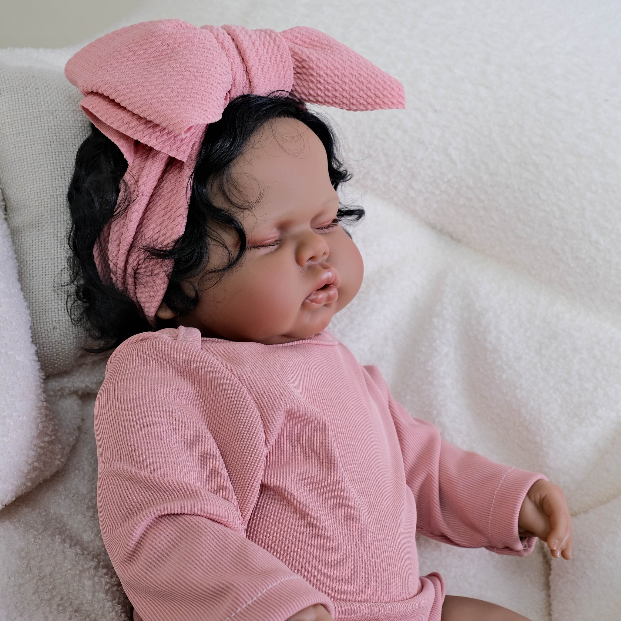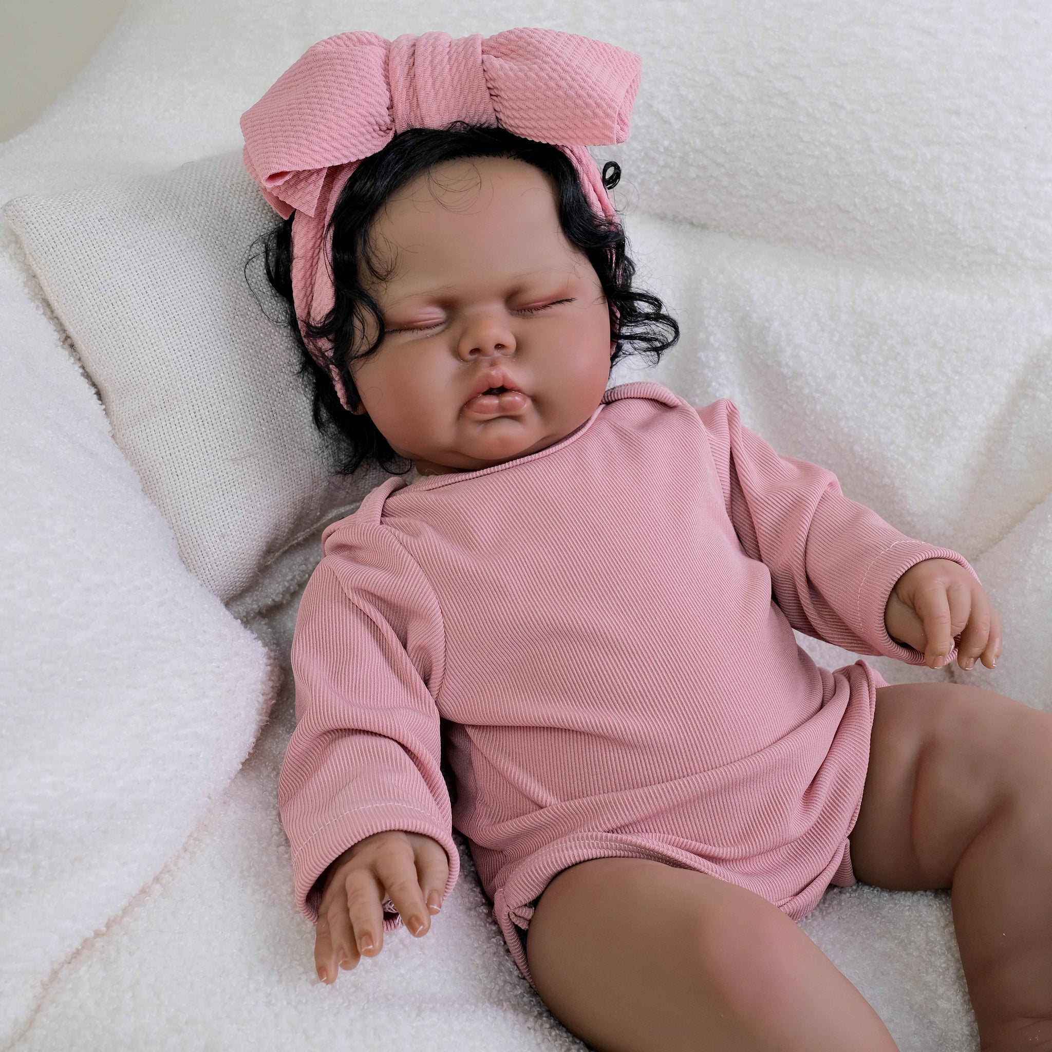 Pinky Reborn 19 inch Reborn Baby Doll with Rooted Black Hair Realistic Dark Skin Tone Baby Boy Pickle Plush Body Collectible Doll Gifts For Kids