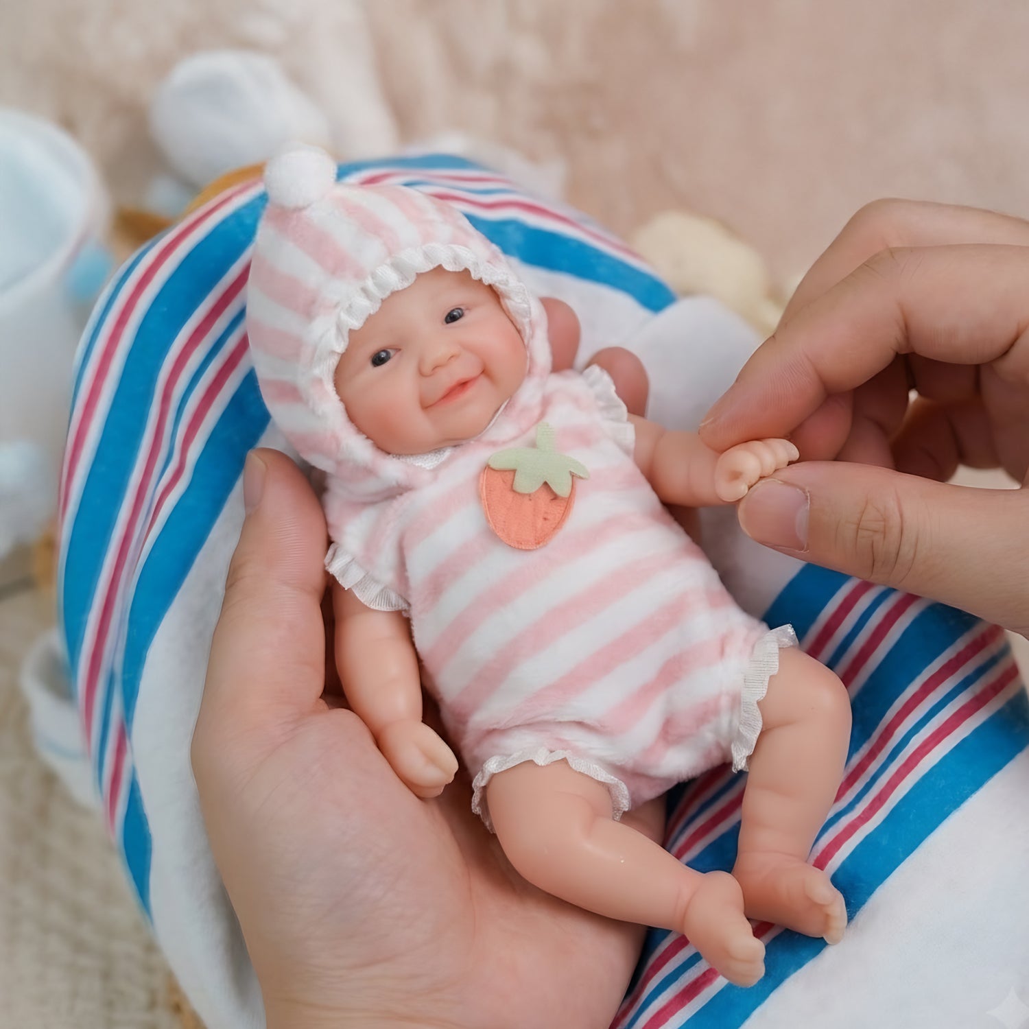 - The mini dolls are made of solid platinum silicone, the hand feel is closer to human skin and more real, very soft and realistic like a real mini baby.