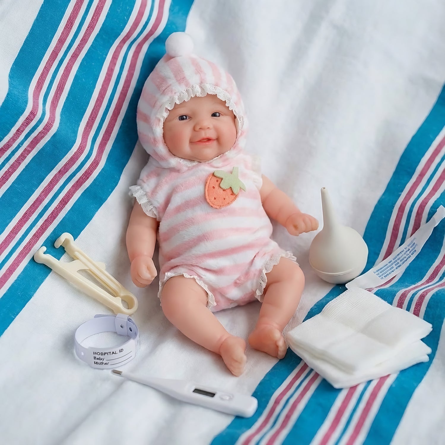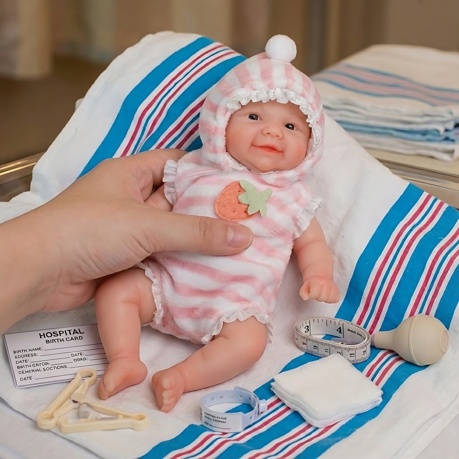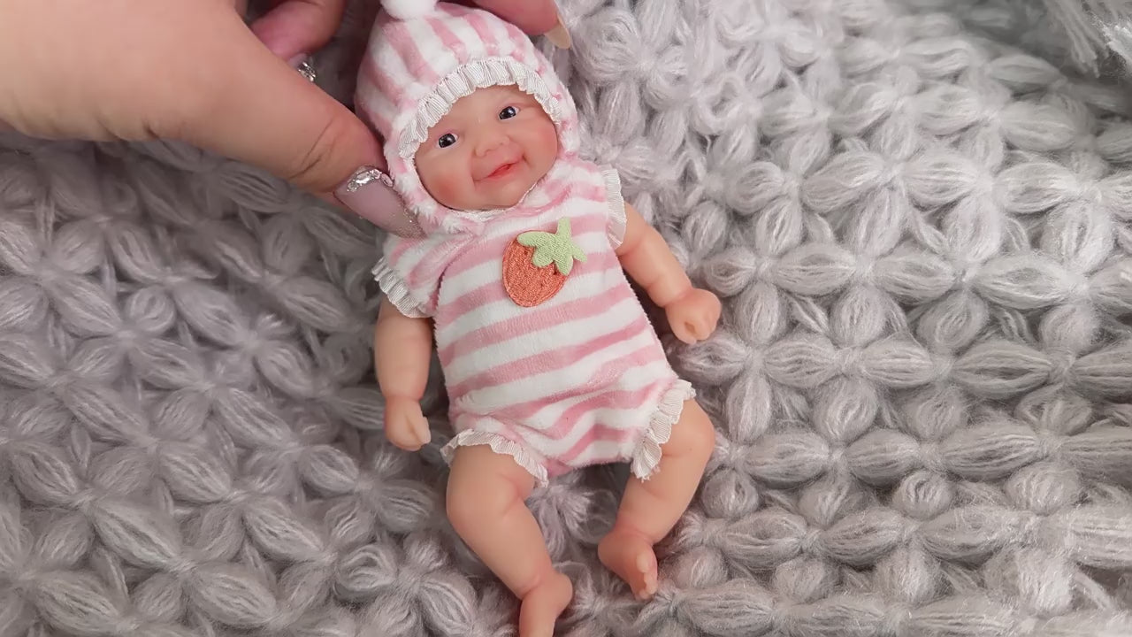 - The lifelike baby doll is wearing a pink suit, you can also change other mini mos real baby outfits for her, improve your matching ability.This mini doll is made entirely of silicone, so always treat her gently. If you like to bathe her, be gentle when bathing or changing her clothes.