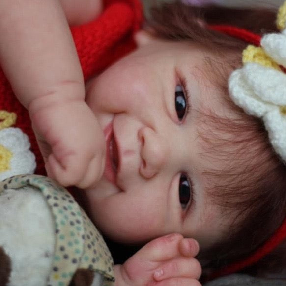 Introducing Vivienne, the most huggable 19inch reborn baby doll, ready to bring joy and warmth as the perfect gift! With her soft cloth body perfect for cuddling, rooted brown hair, and bright blue eyes, she captures the heart with her sweet smiling expression.
