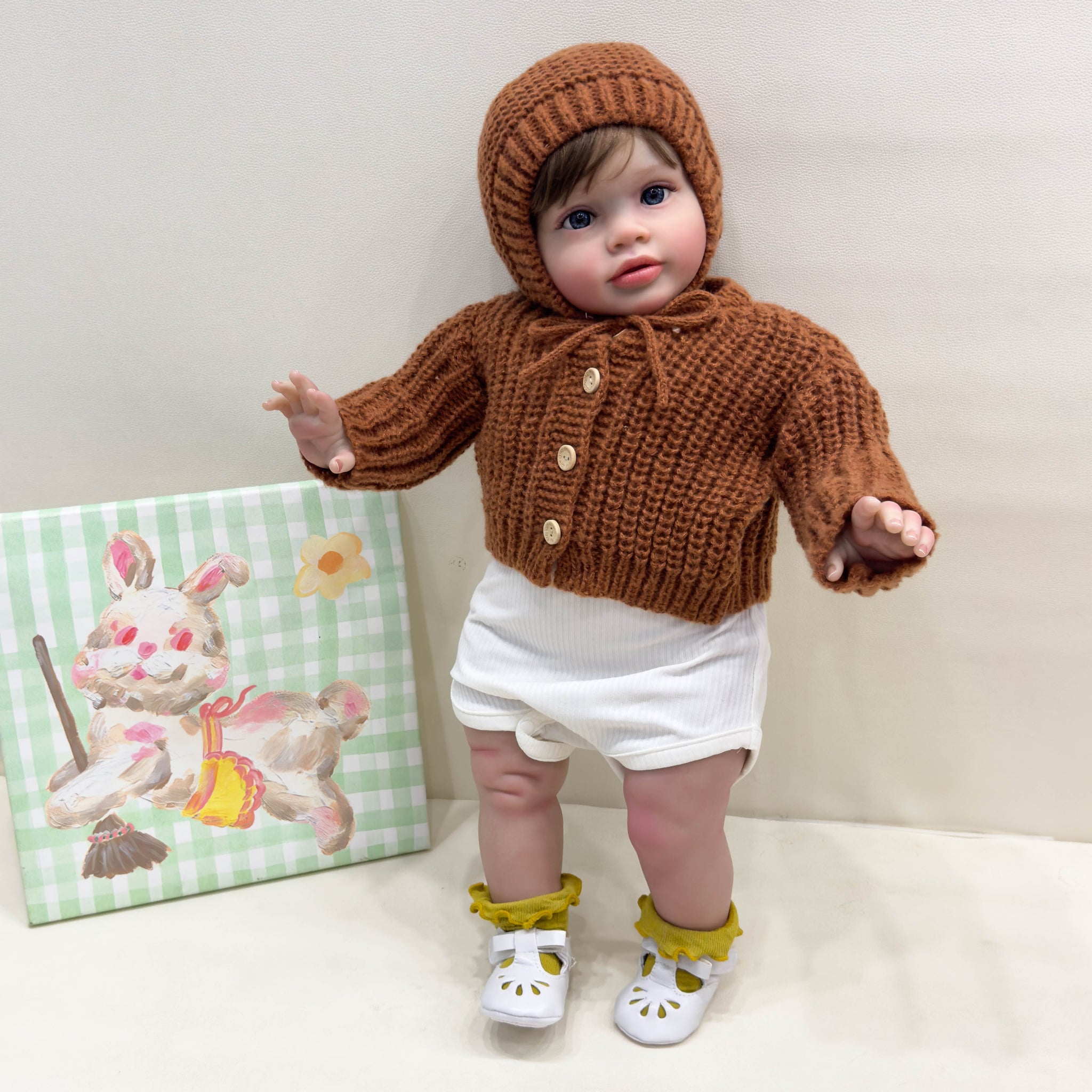 ❤CLOTH BODY - Baby doll's shoulder and body are cloth with internal filling PP cotton, Soft Touch Simulation Silicone vinyl full limbs, the body has no gender. The limbs are movable. Reborn baby doll can sit and lay down easily, but CANNOT stand, speak or be washed.